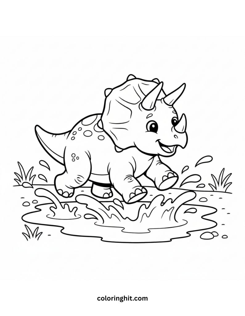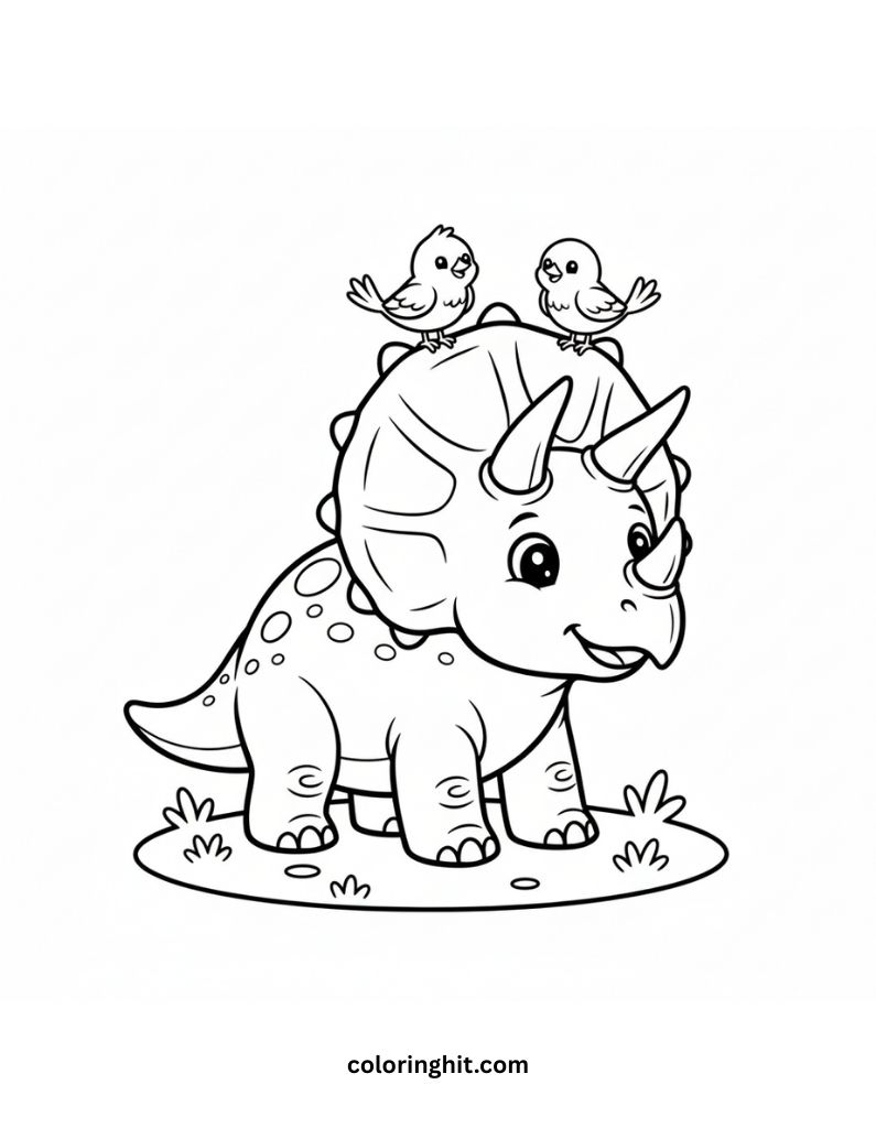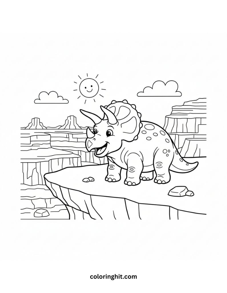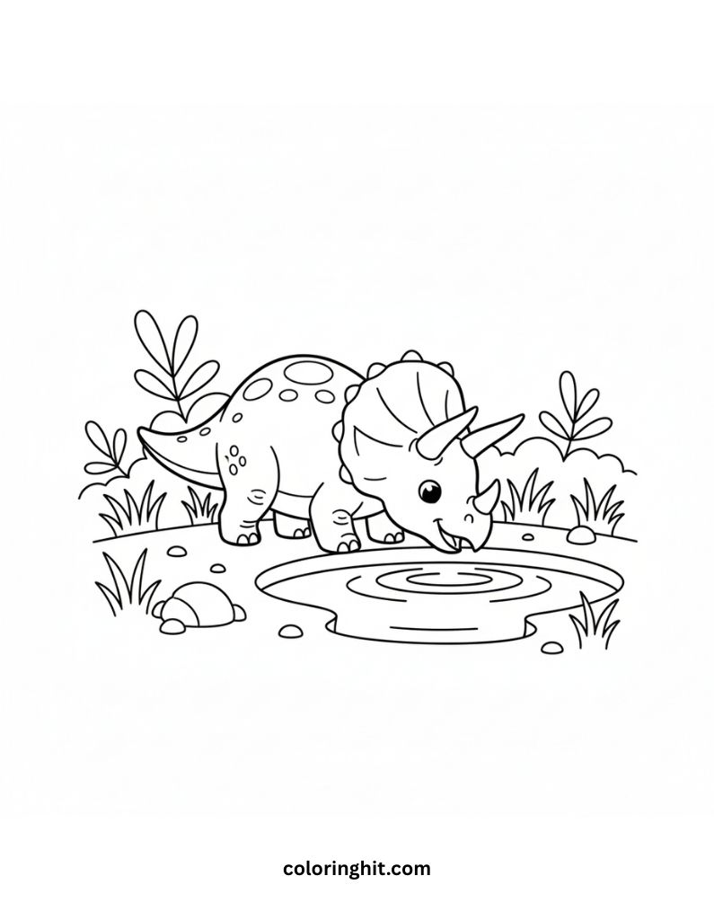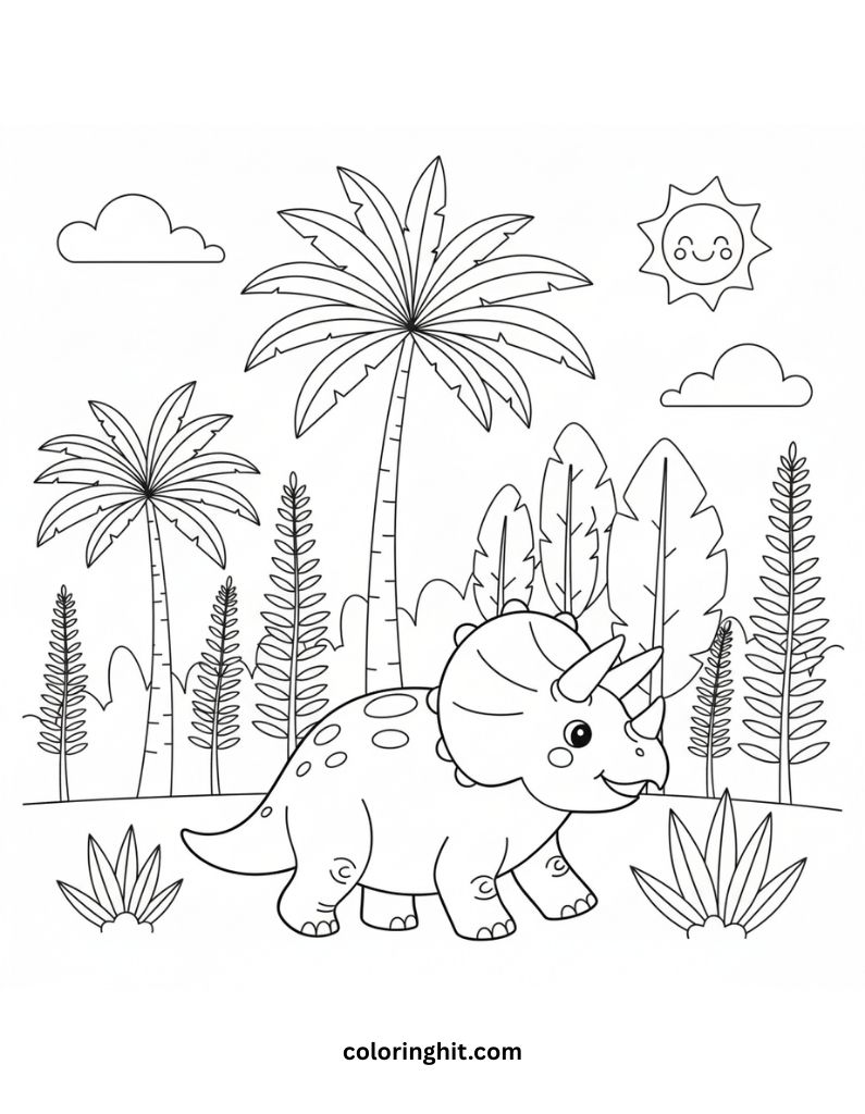 Meet the friendly plant eater of the Cretaceous. Our free printable Triceratops coloring pages feature the three horn dinosaur in calm nature scenes, forest paths, and meadow settings. Clean, bold outlines make each sheet easy to color and perfect for preschool and early elementary artists.